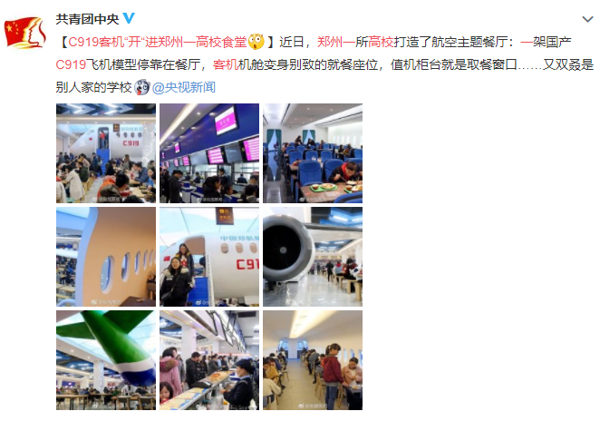 前段時間,微博@共青團中央分享的一則“C919客機‘開’進鄭州一高校食堂”的消息引起網(wǎng)友熱議,評論精彩紛呈。