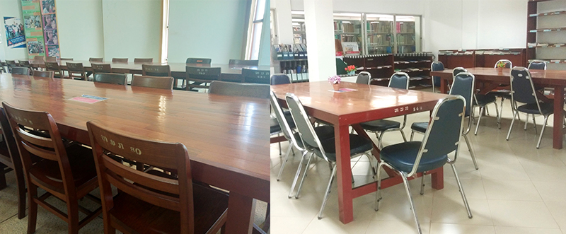 之前我們說老撾國立大學“低調(diào)奢華有內(nèi)涵”,教室和食堂桌椅是實木的,進入圖書館之后,發(fā)現(xiàn)閱讀處的桌子也是實木的...不愧是木材資源豐富的國家。