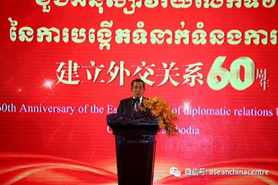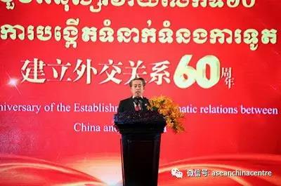 2018年7月2日,駐柬埔寨使館在金邊鉆石島會堂隆重舉辦中柬建交60周年紀念招待會。柬埔寨王國政府首相洪森及夫人文拉妮、5位副首相、柬王室帕花黛薇公主、柬中友協(xié)主席艾桑奧、國務(wù)兼外交大臣布拉索昆等20余位政府部長、有關(guān)國家駐柬使節(jié)、華僑華人代表以及各界友好人士500余人出席。