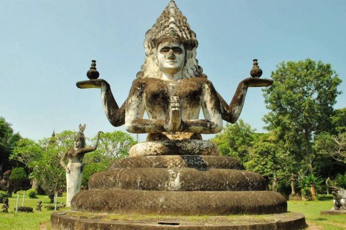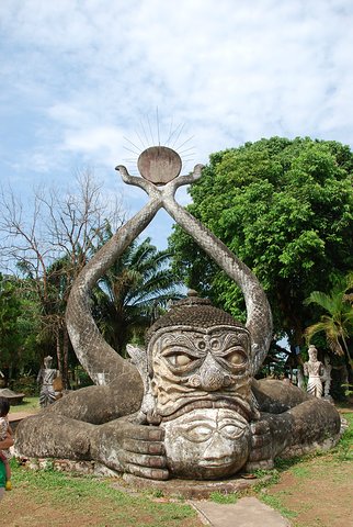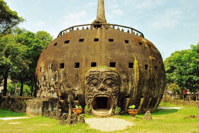 坐落在首都萬象東南部湄公河畔上的香昆寺(又叫佛像公園),寺如其名,公園里到處都是千姿百態(tài)的佛像和雕塑,這是一個(gè)怪人荒誕野心的紀(jì)念物。它的創(chuàng)建者創(chuàng)建者班勒威·蘇里拉是一名泰國僧侶,他將印度教和佛教的哲學(xué)思想、傳說和肖像學(xué)融會貫通,組合成一個(gè)神秘的整體。