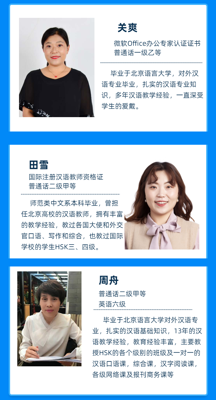 金沛漢語(yǔ)學(xué)院擁有雄厚師資力量和優(yōu)秀的教師團(tuán)隊(duì),中國(guó)名校名師在線課堂,扎實(shí)的專業(yè)知識(shí)、漢語(yǔ)考試技巧、方向,根據(jù)學(xué)生目標(biāo),制定適合的教學(xué)計(jì)劃,助你順利過關(guān)!
