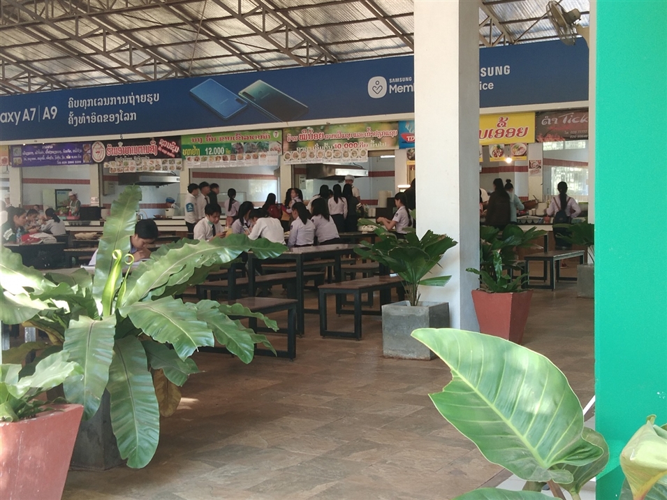 老撾國(guó)立大學(xué)的食堂帶有很濃郁的東南亞風(fēng)格,與中國(guó)高校的密封式建筑不同,它的四面圍墻基本都以玻璃窗和柱子代替,因此通風(fēng)和采光都很不錯(cuò),食堂里不會(huì)充斥著各種食物交雜的悶熱氣息。