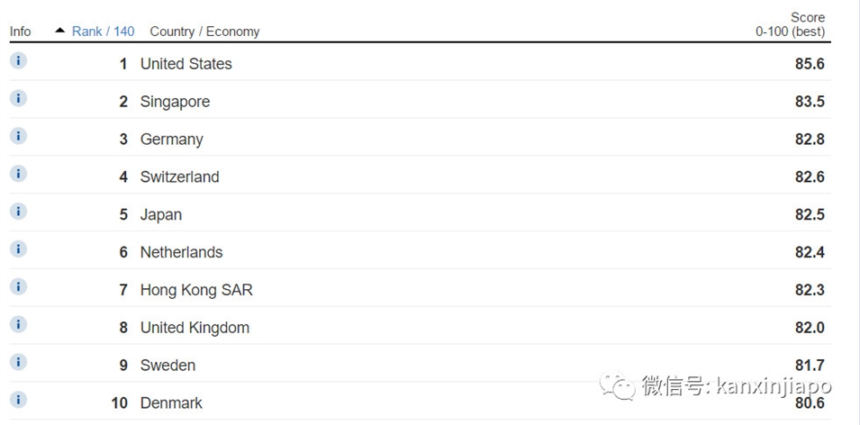 前天(10月16日)世界經(jīng)濟(jì)論壇發(fā)布了今年的《全球競(jìng)爭(zhēng)力報(bào)告》,新加坡比去年上升一名位居第二。而第一名則被美國(guó)拿下,取代此前霸榜9年的瑞士。